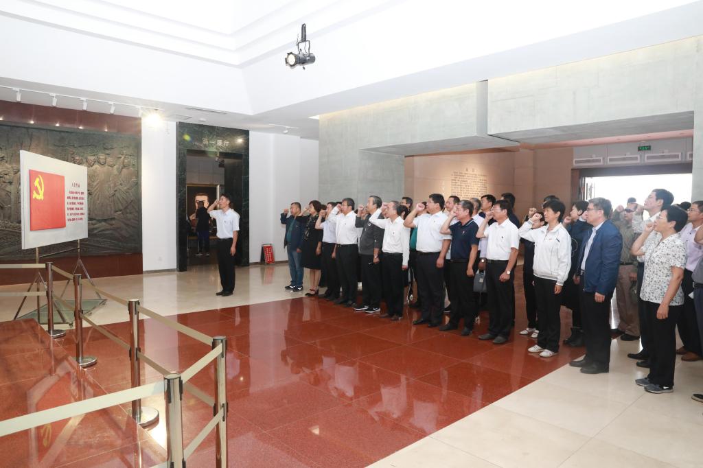 “我志愿加入中国共产党,拥护党的纲领,遵守党的章程,履行党员义务,执行党的决定......”参观结束后,全体同志回到纪念馆瞻仰大厅,庄严肃立,面向鲜红党旗举起右手,庄严宣誓,重温入党誓词。铿锵有力的誓词在瞻仰大厅回荡,现场所有人都深受感染,更加增强了我们牢记誓言,不忘初心,砥砺前行,继承先烈遗志,发扬爱国主义精神,坚定理想信念,为党和人民的事业奋斗终身的信心和决心。