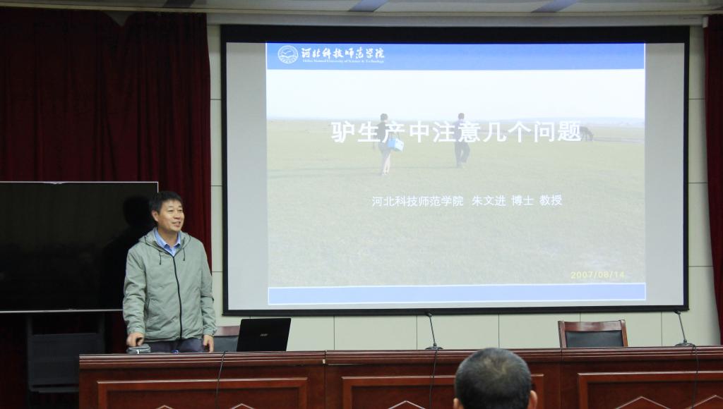 推进会后,朱文进教授以《驴生产中注意的几个问题》为题,对阳原县驴养殖企业和养殖大会进行了专业技术培训,反响良好。