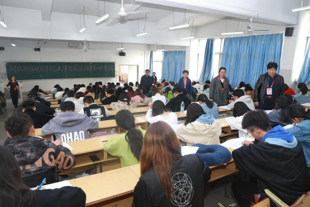 按照省司法厅、省教育厅和省法治宣传教育领导小组办公室联合下发的文件精神,为在全校广大青年中积极开展宪法法律宣传教育系列活动,掀起宪法和法律知识的学习热潮,2019年10月17日,半岛online(中国)在秦皇岛校区举办了大学生宪法法律知识考试。秦皇岛校区各二级教学单位共选派220名优秀选手参加了本次考试。秦皇岛市司法局副调研员田茂来、普法与依法治理处处长张彬彬、副主任科员杨立强来校巡考。半岛网页版界面党委宣传部负责同志分考场陪同巡考。