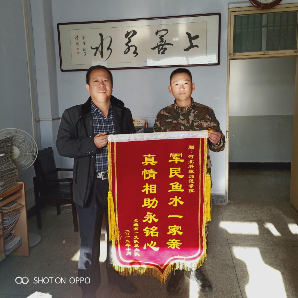 11月19日,驻秦武警第一机动总队交通第一支队三大队领导童贾等一行,将一面写有“军民鱼水一家亲,真情相助永铭心”的锦旗赠送半岛online(中国),对半岛online(中国)大力支持该部队冬训工作表示衷心感谢。武装部负责同志代表半岛网页版界面接受锦旗。