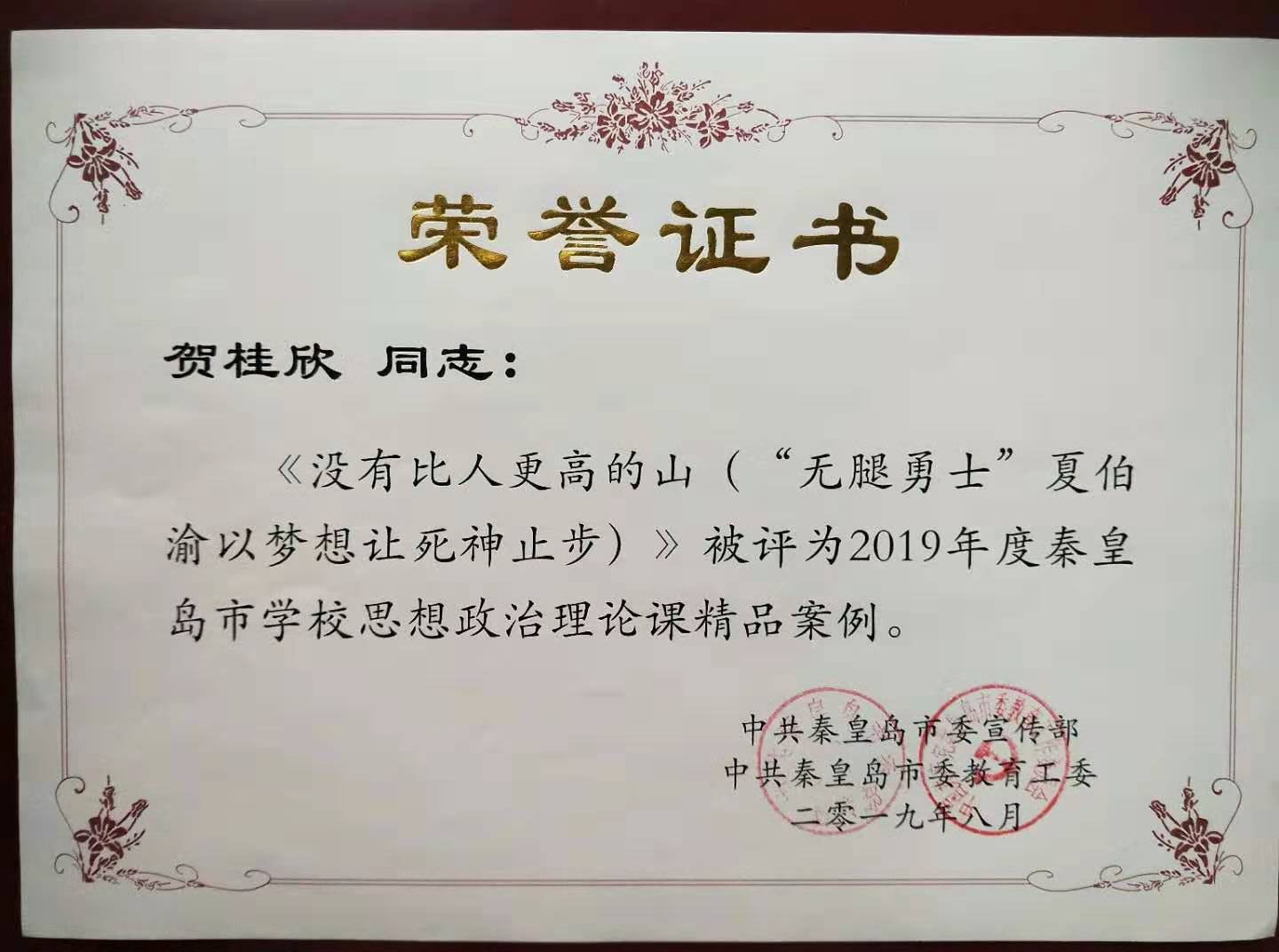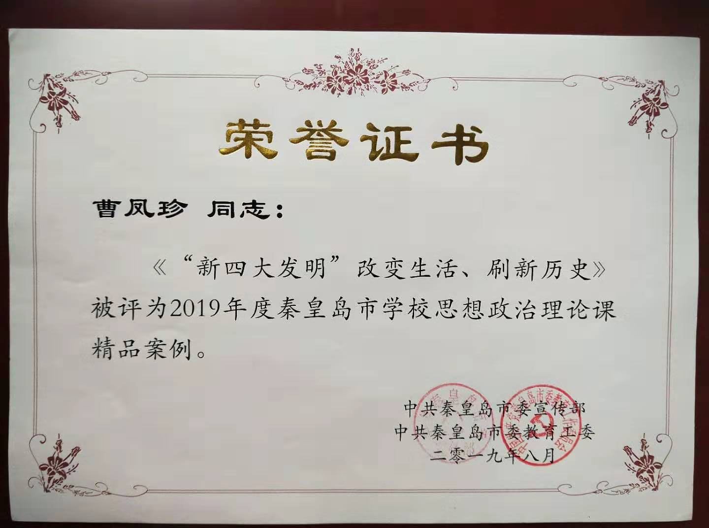 日前,市委宣传部公布了2019年秦皇岛市半岛网页版界面思想政治理论课精品案例、教学名师评选结果。半岛online(中国)思想政治理论教学部常旭教授被荣获思想政治理论课教学名师称号;思想政治理论教学部曹凤珍老师讲授的《“新四大发明”改变生活、刷新历史》和贺桂欣老师讲授的《没有比人更高的山(“无腿勇士”夏伯渝以梦想让死神止步)》被评为思想政治理论课精品案例。(编辑:孙艳敏  审核:彭妍)
