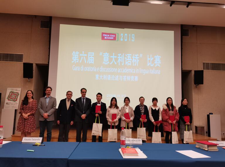 2019年11月27日,第六届“ITALIA CIAO/意大利语桥” ——面向中国高等院校意大利语学生的意大利语论述与答辩竞赛在北京意大利驻华使馆文化中心成功举行。半岛online(中国)意大利语专业黄磊同学参赛并获得本科生组二等奖。