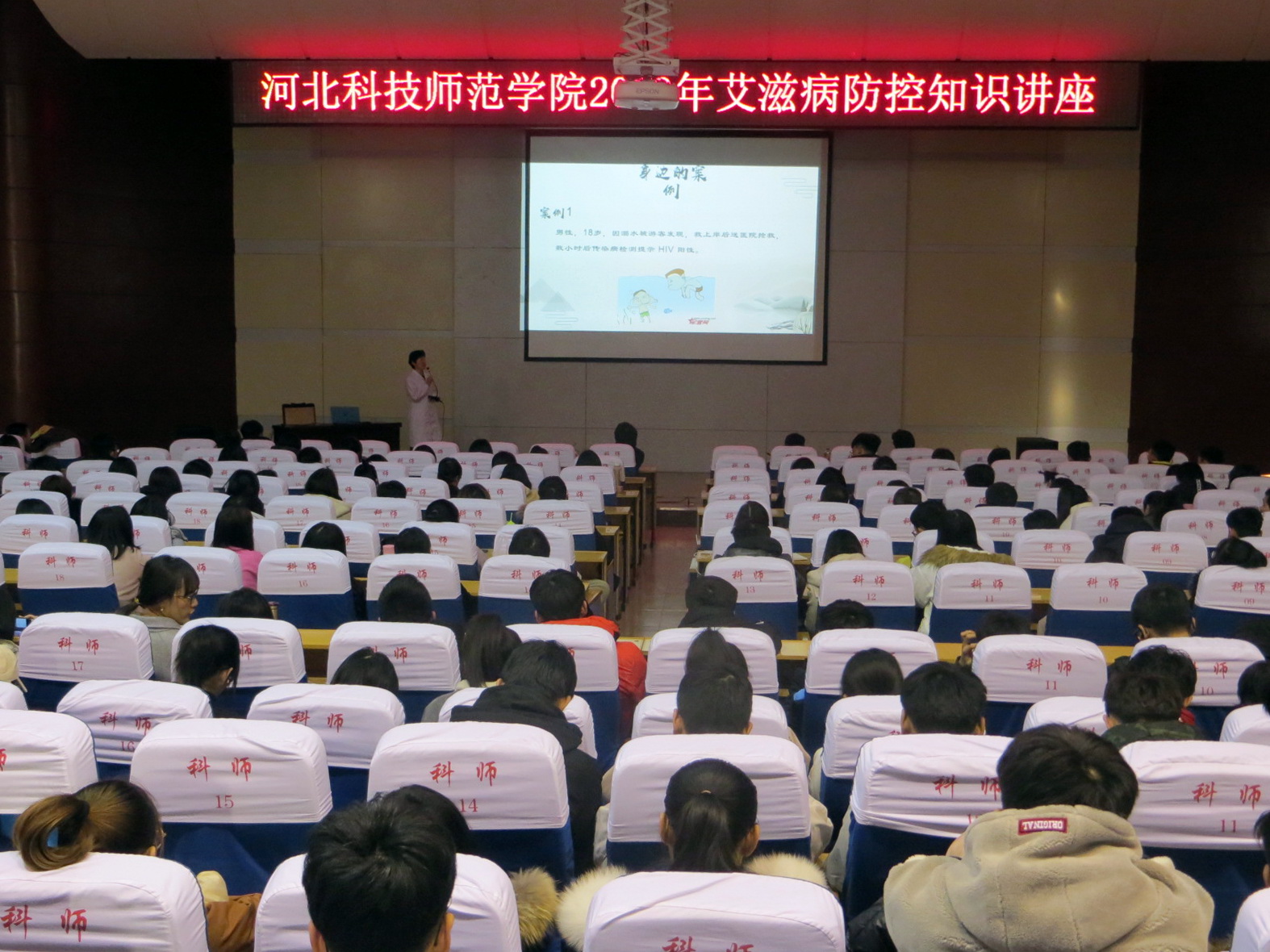 举办艾滋病防控知识主题讲座。校医院邀请秦皇岛市中医院感染控制科张杰主任作为主讲人,与学生处、研究生部分别于11月22日、26日在开发区校区和主校区联合举办“青春不散场、防艾不停歇”主题讲座,两校区800余名同学参加讲座,了解艾滋病相关防控知识,携手共进,共同铸造防艾防线;同时,校医院与学生处于12月3日在昌黎校区联合举办主艾滋病防控知识讲座,由校医院公共卫生医师齐峻瑶向同学们普及宣传防治艾滋病相关知识,提高学生对我国严峻的艾滋病流行形势的认识。
