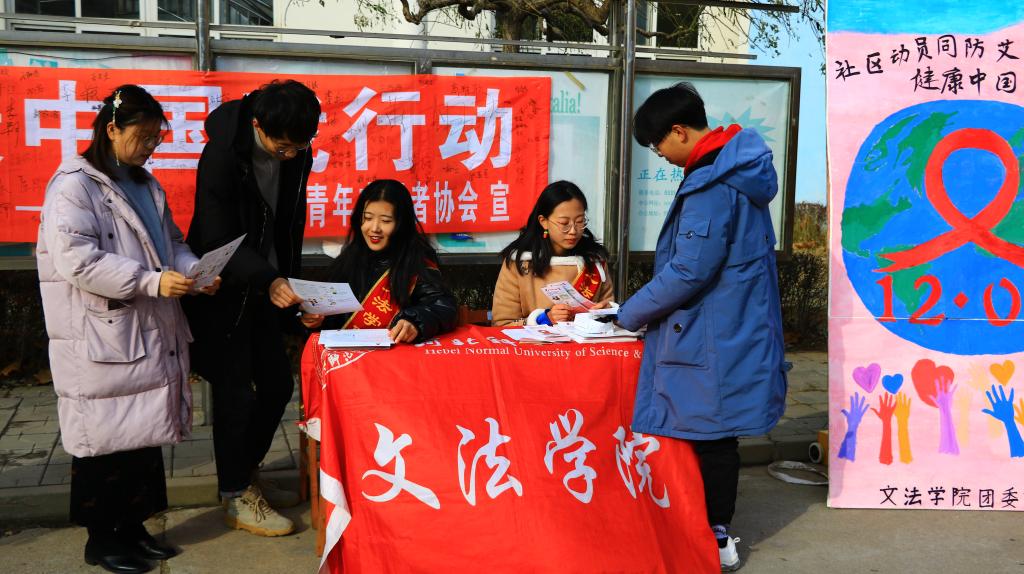 校医院与学生社团联合组织多种防艾宣传活动。校医院与校青年志愿者协会和文法学院青年志愿者协会联合,分别在主校区和开发区校区开展“艾滋病日”宣传活动。校党委副书记、校长郭鸿湧,副校长蒋爱林出席签字活动。两校区志愿者向往来同学发放艾滋病防控宣传资料,为每一位同学认真讲解艾滋的相关防控知识;并组织“社区动员同防艾,健康中国我行动”主题签名活动及全国大学生预防艾滋病知识竞赛扫码竞答活动。使更多同学可以参与活动,了解更多的艾滋病防控知识,能够正确做好个人防护,不轻视,也不过度揣测恐惧,可以正确对待艾滋病人,给予更多理解和关怀。