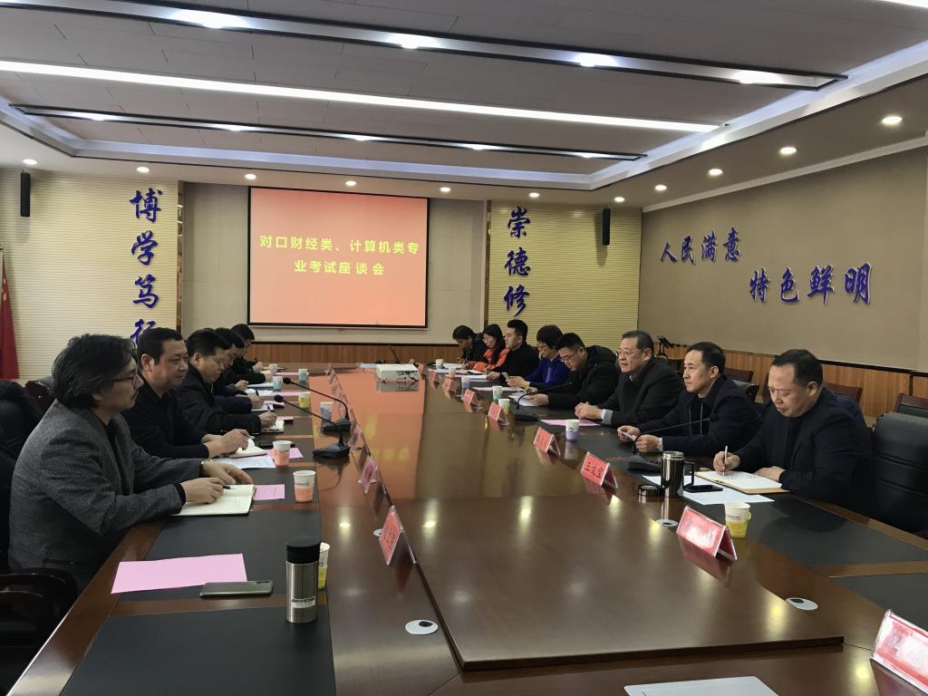 12月23日,校党委常委、副校长冯瑞银带队,招生就业处、教务处、数学与信息科技学院一行12人赴石家庄职业技术学院就2020年河北省对口专业考试工作进行专题调研。省教育考试院副院长高志良、普招处处长郭文明、副处长董立彬等,石家庄职业技术学院党委书记陈联记、副院长王文宝及教务处领导,河北外国语学院党委副书记孙天明、考试工作负责人参加调研座谈会。