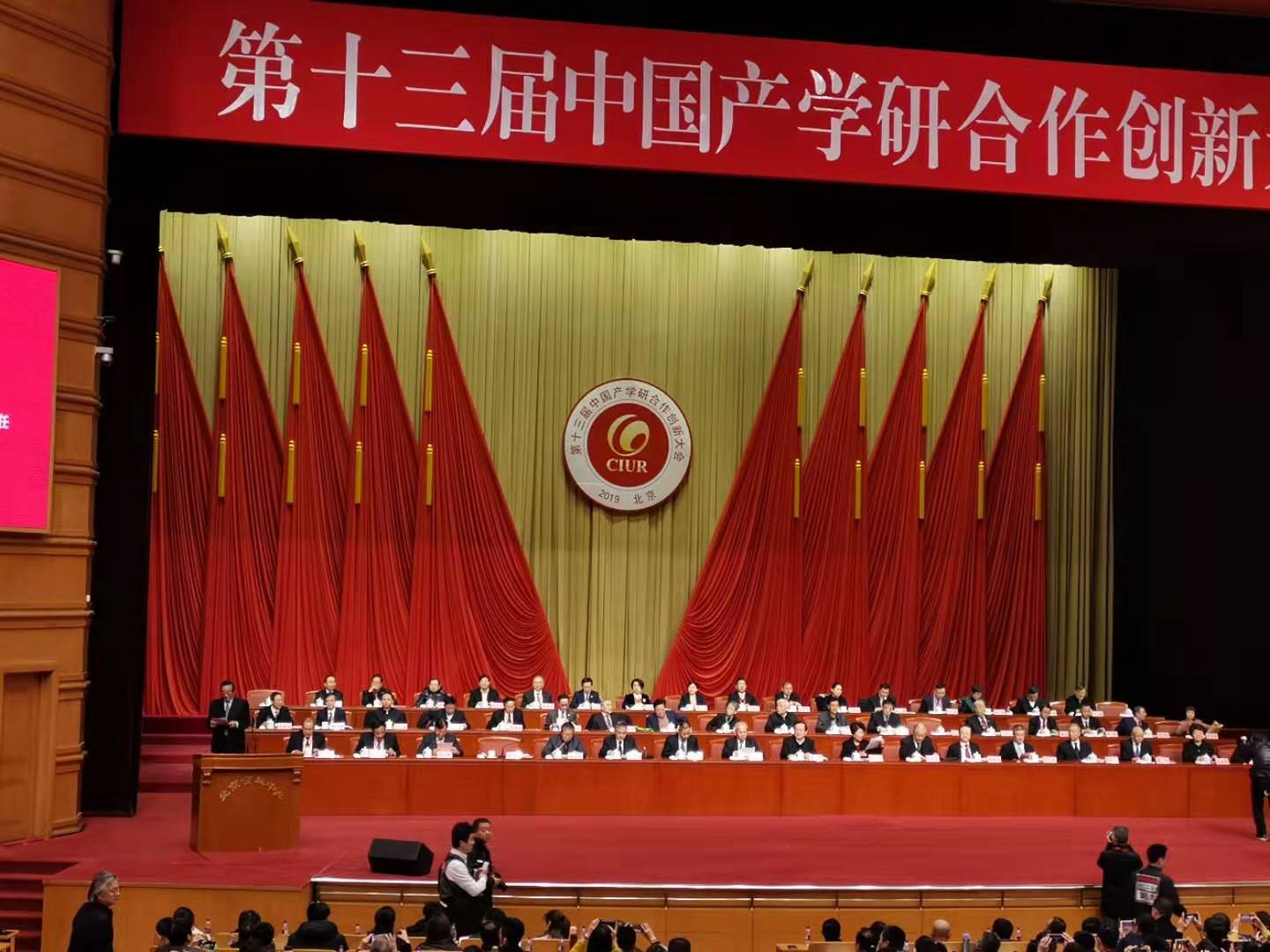 2019年12月30日,第十三届中国产学研合作创新大会在北京会议中心隆重举行。万钢、陈至立、王钦敏及辛国斌20余位省部级领导出席会议,近1500名来自全国产学研、政金界、商媒用各界一线的代表和专家学者围绕产学研合作相关议题展开研讨,会上为获奖单位颁奖。