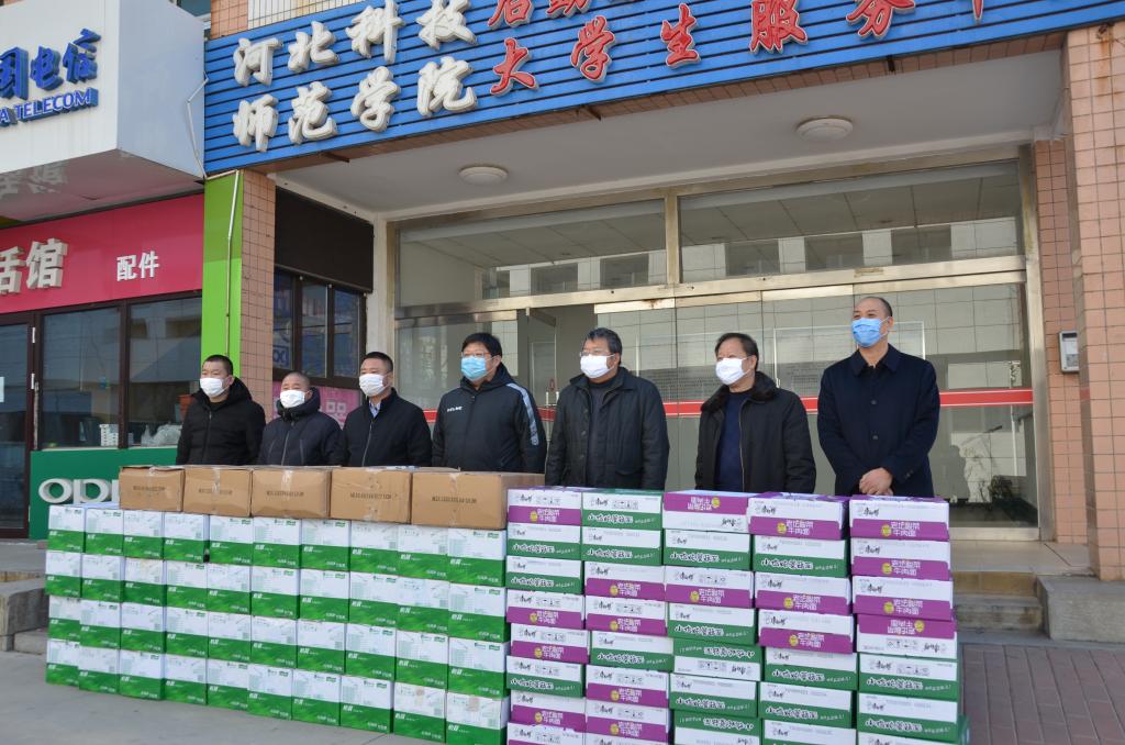 为支持半岛online(中国)疫情防控工作,给一线防控人员送去温暖和力量,3月2日,秦皇岛燕科餐饮管理有限公司给半岛网页版界面捐赠40件矿泉水、40箱方便面、5000只口罩,总价值2万余元。校党委副书记、校长郭鸿湧,校党委常委、副校长蒋爱林出席捐赠仪式。