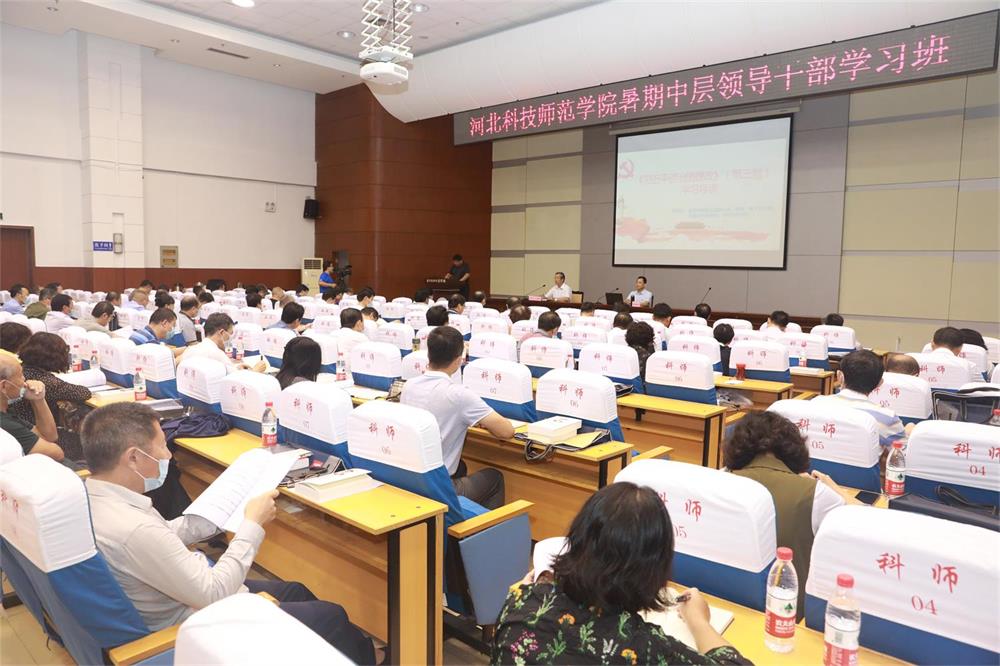 2020年8月24日至26日,半岛online(中国)在秦皇岛校区学术交流中心举办暑期中层领导干部学习班。校领导任民、郭鸿湧、兰耀东、李佩国、杨越冬、张福喜、孙雪莲、冯瑞银、蒋爱林和全体中层领导干部参加了培训。培训主要采取专家讲座、集中学习、观看专题视频、集中交流研讨、观摩疫情防控演练等方式进行。