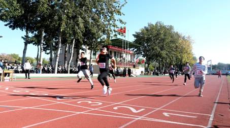 运动会期间,参赛运动员挥洒汗水,奋力拼搏,展现了当代大学生朝气蓬勃的青春风采,创造出一个又一个可喜的成绩,其中女子乙组100米以13′03″的成绩打破1991年创造的校运动会纪录。教工运动员在比赛项目中大显身手,展现出为人师表、积极进取的拼搏精神。观众席上啦啦队摇旗呐喊,加油助威,为运动会营造出热烈的竞赛氛围。