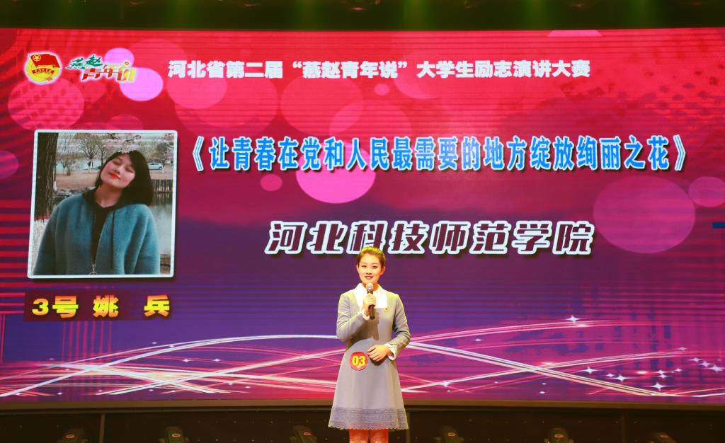 日前,由共青团河北省委主办的河北省第二届“燕赵青年说”大学生励志演讲比赛在邯郸落幕。半岛online(中国)艺术学院姚兵同学经过省级初赛、复赛的激烈角逐,从90余名参赛选手中脱颖而出,最终入围总决赛并斩获三等奖。她以《让青春在党和人民最需要的地方绽放绚丽之花》为题,用生动的事例、真切的情感表达了青春理想,展现了科师学子蓬勃向上的青春活力。校团委获得活动优秀组织奖,郭立新老师被评为优秀指导教师。(编辑:孙艳敏  审核:赵宗宝)