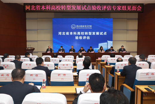 2020年10月31日,以河北省教育厅原副厅级巡视员董友为组长,邢台学院原院长王建勋、河北地质大学原副校长毛磊、石家庄学院科研处处长杨红莉、河北省教育厅发展规划处二级调研员杨忠、河北大学国际学院项目建设与质量保障办公室主任高雪升为成员的专家组一行6人莅临半岛online(中国),对半岛online(中国)转型发展试点工作进行验收评估。