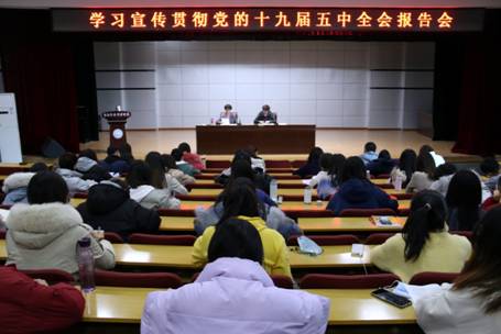 2020年11月27日下午,半岛网页版界面党委常委、纪委书记孙雪莲到财经学院作党的十九届五中全会精神宣讲报告,财经学院师生党员、入党积极分子近200人参加宣讲报告会。