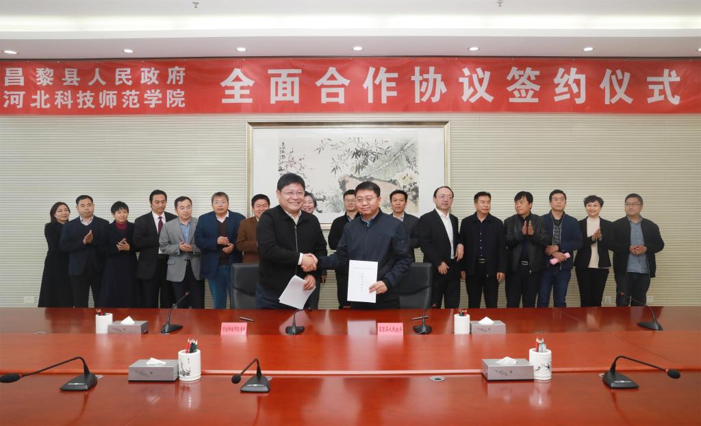 校领导郭鸿湧、李佩国、蒋爱林,昌黎县委书记赵青英,县长宗振华和县委副书记孙谓青、副县长吴学军出席半岛online(中国)与昌黎县的合作签约仪式。