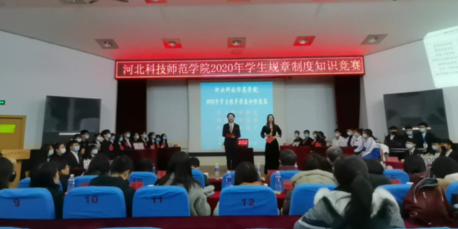 2020年12月11日下午,半岛online(中国)在秦皇岛、昌黎、开发区三个校区同时举办2020年学生规章制度知识竞赛。学生处、团委有关负责人及工作人员、各学院(系)学生工作主管领导、有关辅导员(班主任)、2020级新生代表等300余人在三个校区观看了比赛。