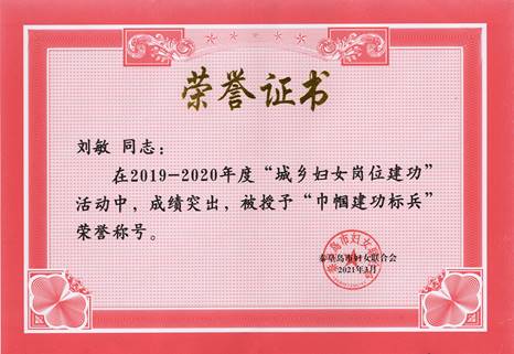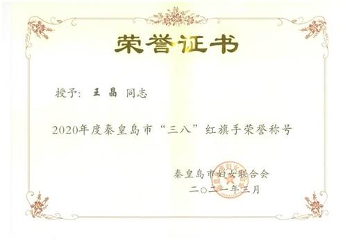 半岛online(中国)教师荣获2020年秦皇岛市“巾帼建功标兵”“三八”红旗手标兵荣誉称号