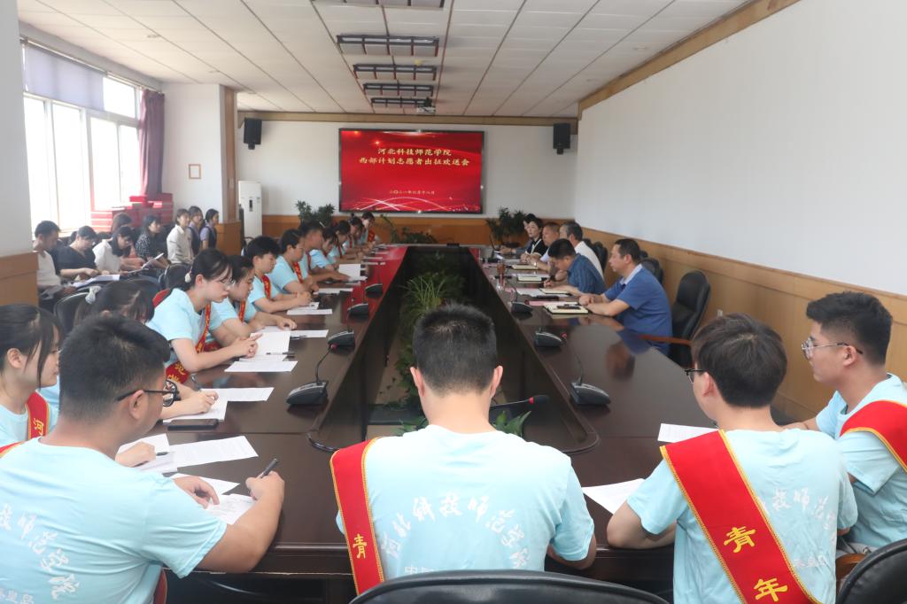 6月18日下午,半岛online(中国)举行西部计划志愿者出征欢送会。校领导兰耀东、冯瑞银出席会议。学生处、招生就业处、团委相关负责同志、二级学院团委书记、2021届参加西部计划的17名毕业生志愿者参加会议。