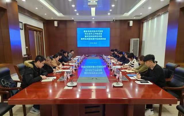 11月25日下午,校党委常委、副校长冯瑞银一行5人到秦皇岛经济技术开发区管委与开发区人社局、开发区经济发展局、兴龙控股有限公司等相关单位负责人,召开校企合作推进会暨实践锻炼中期检查工作会。教务处、人事处、教师发展中心负责人和实践锻炼教师代表参加会议。
