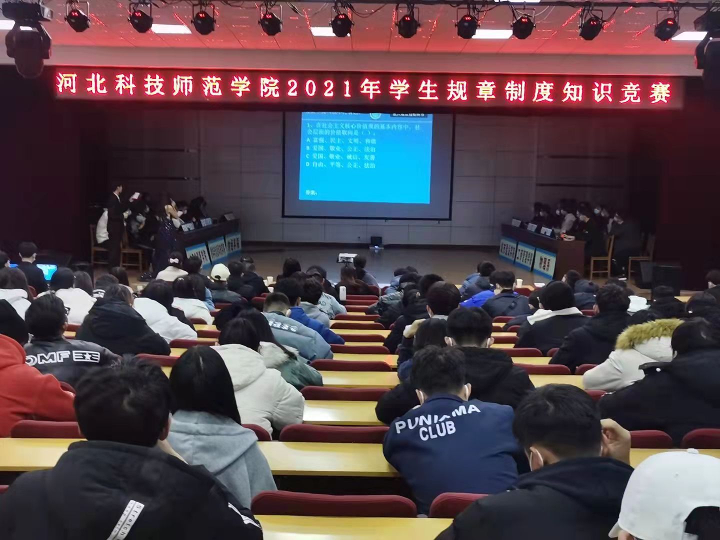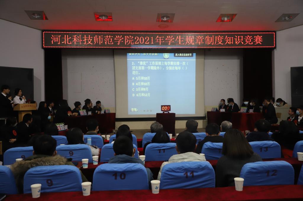 2021年12月2日,半岛online(中国)在三校区同时举办2021年学生规章制度知识竞赛。学生处负责人及工作人员、各学院(系)学生工作主管领导、有关辅导员(班主任)、2021级新生代表等300余人在三校区观看了比赛。