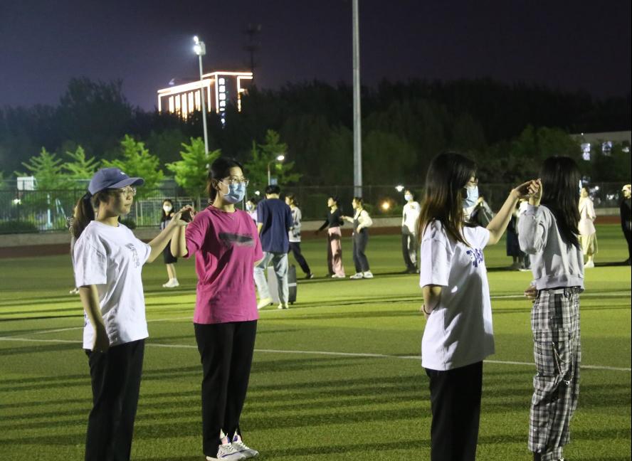 举办“喜迎二十大、欢庆青年节”操场晚会。为营造良好的校园学习和生活氛围,引导广大学生以激情昂扬的姿态迎接党的二十大胜利召开。教育学院举办了“喜迎二十大、欢庆青年节”操场晚会。晚会以《致青春》开幕,学生管理团队带来诗朗诵——《奋斗是青春最亮丽的底色》,同学们围坐在操场上静静地聆听,深深思考。之后,进行了 “同心抗疫,舞动青春”广场舞汇报演出。