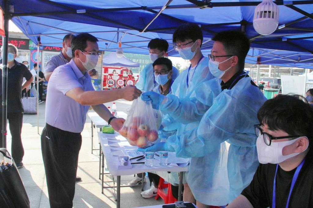 在秦皇岛火车站,朱勇一行认真了解了近几天新、老生报到返校情况。嘱咐师生志愿者一定按照要求耐心细致地协助同学们做好返校、报到工作,严格做好自身防护。朱勇等领导还向节日期间仍坚守在接站现场的师生以及刚到车站的同学致以节日问候和祝福,给他们送上月饼水果等慰问品。