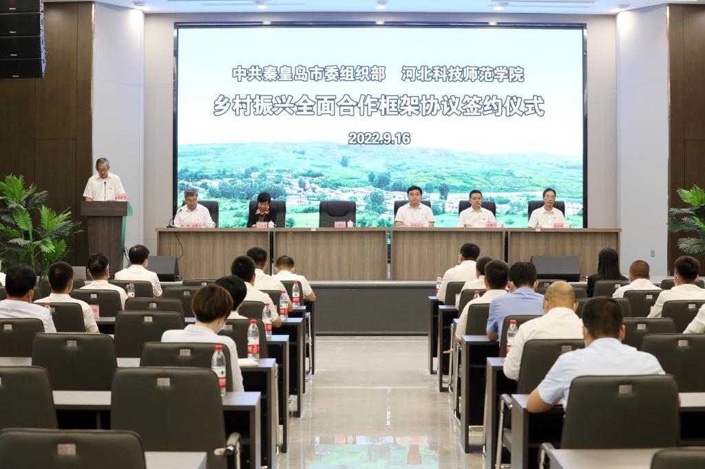 刘大江在讲话中对半岛online(中国)长期以来给予秦皇岛经济社会发展的支持和帮助表示感谢,同时强调,乡村要振兴,产业是基础,人才是关键。校地双方乡村振兴全面合作框架协议的签署,是贯彻市委抓党建促乡村振兴决策部署的重要举措、是持续推进抓党建促乡村振兴的力量补充、是充分实现校地合作共赢的有益探索。此次签约,标志着我市抓党建促乡村振兴工作开启了新篇章、校地合作运行模式迈入了新阶段、人才引育路径取得了新突破。同时希望校地双方共同以此次签约为契机,精诚团结、勠力同心,完整、准确、全面贯彻新发展理念,以实际行动奋力书写全面建设国际一流旅游城市的乡村答卷,以优异成绩迎接党的二十大胜利召开。