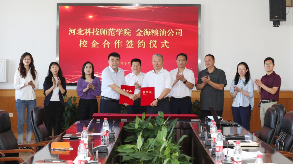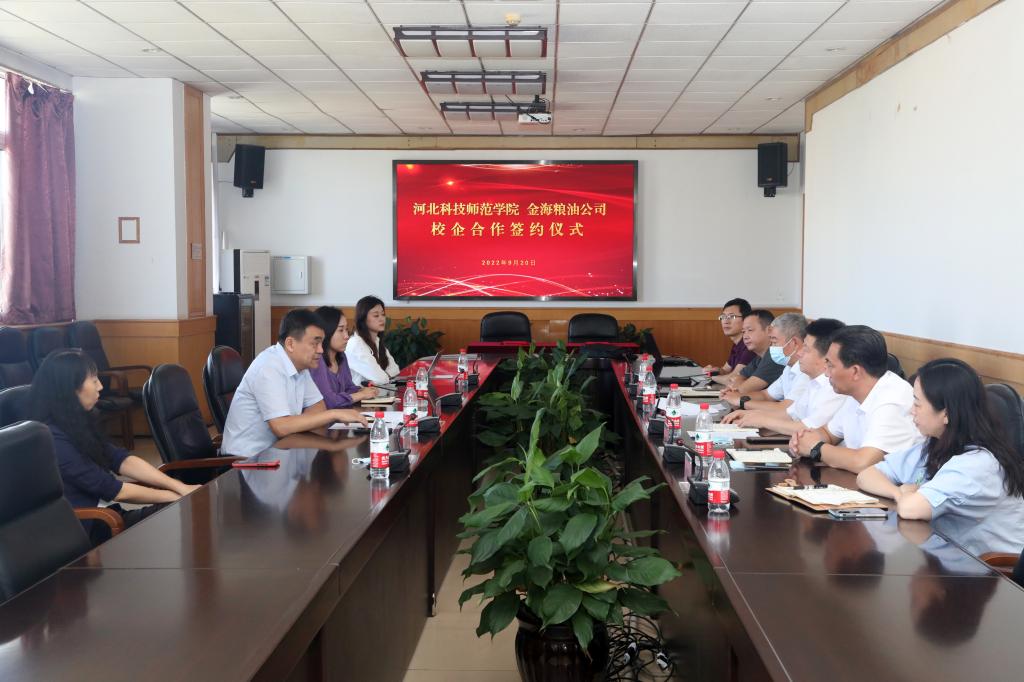 9月20日上午,半岛online(中国)与金海粮油公司合作协议签订仪式在秦皇岛校区举行,半岛网页版界面党委常委、副校长冯瑞银出席签约仪式并致辞。秦皇岛金海粮油、特种油工业有限公司副总经理杜若辉,益海嘉里集团招聘经理张诗偲,秦皇岛金海粮油、特种油工业有限公司人事行政部高级经理谢薇等与半岛online(中国)教务处、招就处、食品科技学院等部门负责人一起参加了签约仪式,签约仪式由食品科技学院院长李军主持。