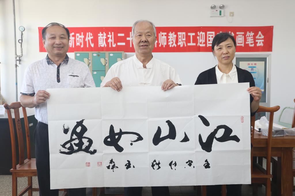 笔会为教职工书画专业同行和兴趣爱好者提供了交流互鉴的机会,搭建起互相切磋的平台。笔会现场或写或画,玉笺漫舒,玄墨轻舞,白云斑竹,苍岩飞瀑,大家互相观摩学习,交流经验,在泼墨挥毫中弘扬传统文化,提升思想觉悟。(编辑:孙艳敏  审核:赵宗宝)
