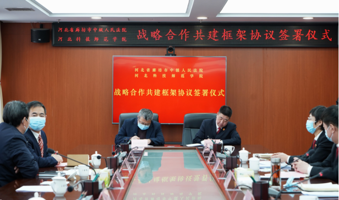 2月7日,校党委常委、副校长蒋爱林率领教务处、文法学院领导班子一行赴廊坊市与廊坊市中级人民法院举行战略合作共建协议签署仪式。