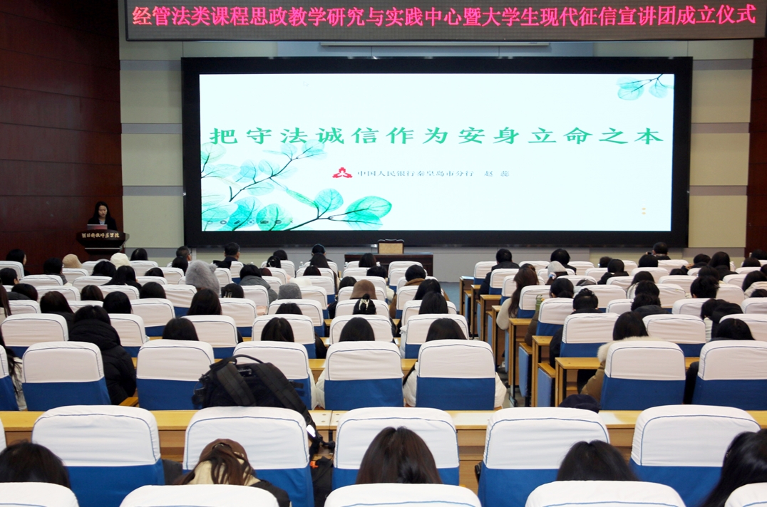 揭牌仪式结束后,中国人民银行秦皇岛市分行征信管理科赵蕊以“把守法诚信作为安身立命之本”为主题,对大学生现代征信宣讲团学院进行了宣讲培训。