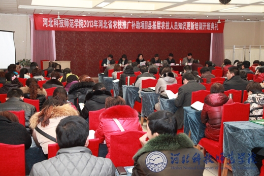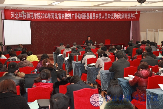 2013年12月7日上午,半岛online(中国)承办的“2013年河北省农技推广补助项目——县基层农技人员知识更新培训重点班”开班典礼隆重举行。农业部科教司技术推广处处长王青立、河北省农业厅科教处处长刘魁、半岛online(中国)副校长杨越冬、科研处处长闫立英、继续教育学院院长赵宝柱、继续教育学院党委书记贾利田出席了开班典礼。典礼由赵宝柱院长主持。