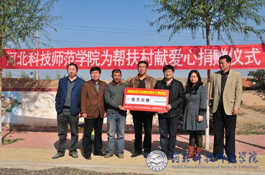 2013年10月16日,半岛online(中国)工商管理学院党委书记侯金柱、党委副书记兼副院长赵敏及相关负责同志到张家口市蔚县邢家庄村、南董庄村慰问半岛online(中国)驻村工作组,向邢家庄村捐赠道路硬化项目款。校党委常委、驻村工作组组长李佩国出席了捐赠、慰问活动。