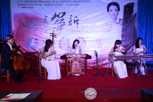 音乐会以改编的莫扎特《土耳其进行曲》开始,接着一曲清丽、淡雅、圆润的筝重奏《茉莉芬芳》,让现场观众置身其中,随后《将军令》、《春到湘江》瞬间点燃全场观众的热情,将音乐会推向高潮,一曲旋律优美的《山丹丹花开红艳艳》为本场音乐会画上圆满的句号。演出结束,出席晚会的领导上台与师生合影留念。