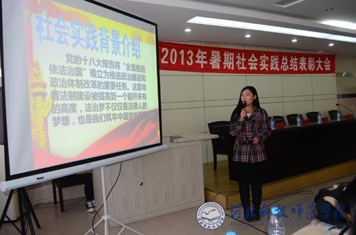 表彰大会后,3支优秀暑期社会实践小分队代表分别就各自在实践活动开展的情况进行了经验交流,得到了与会师生的一致好评。(编辑:孙艳敏 审稿:田 毅)