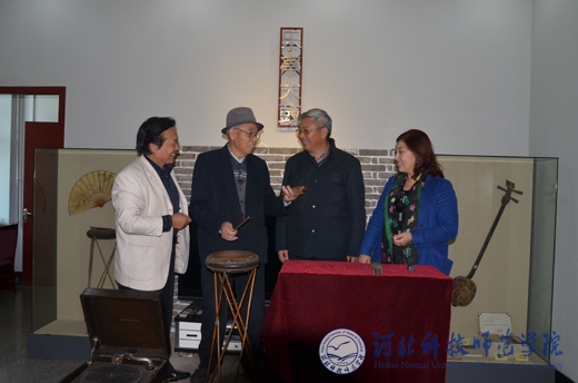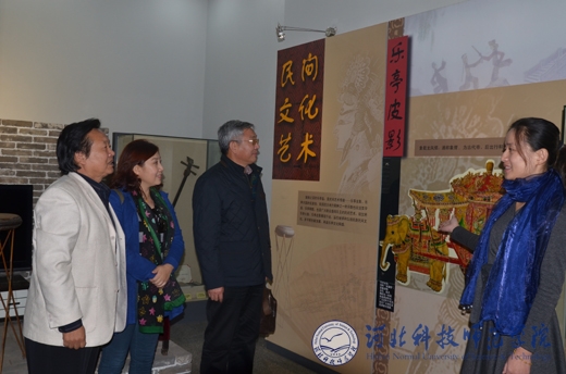 校党委副书记宋绍富(左三)一行参观《乐亭大鼓》、《乐亭皮影》展室
