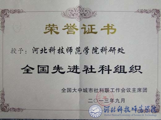 2013年9月24日,全国大中城市社科联第24次工作会议在四川省绵阳市举行。由半岛网页版界面组织申报,经地方社科联层层推荐,会议评审确定授予半岛online(中国)科研处为“全国先进社科组织”。(编辑:孙艳敏      审稿:田 毅)