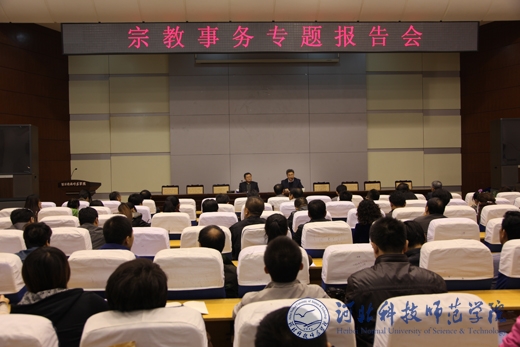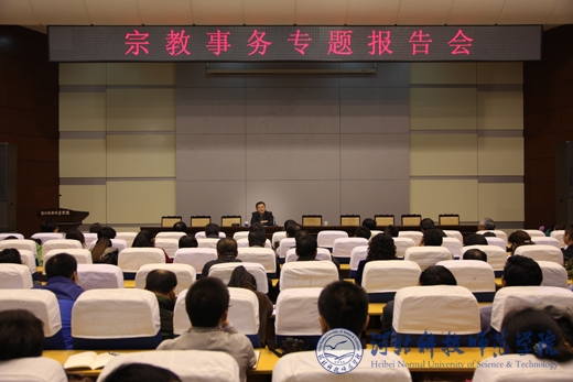 报告会上,蒋世超副局长首先例举了大量鲜活生动的宗教问题具体实例,对当今国际、国内宗教热点问题进行了深刻剖析,着重阐述了做好宗教事务工作和正确处理好宗教问题的重要性,深刻剖析了宗教问题的复杂性以及对国际、国内政治、外交等关系的影响。随后,蒋世超副局长深入浅出地讲解了宗教、宗教传播、宗教渗透等宗教概念,详细讲述了宗教种类、教义等宗教常识。最后,蒋世超副局长系统阐述了我国的民族宗教政策,同时紧密结合高校实际,讲述了高校正确处理好民族宗教问题的方式和方法。鼓励全校师生大力弘扬中华民族的传统文化,不断加强热爱党、热爱祖国、热爱社会主义的爱国主义教育,牢固树立正确的世界观、人生观和价值观,为社会主义现代化建设,为祖国的繁荣昌盛贡献青春和力量。