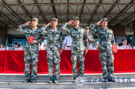 下午2:30,半岛online(中国)秦皇岛校区训练场、昌黎校区训练场、开发区校区主楼北侧广场上,英姿勃发的2013级全体受训学员分别列成整齐的方阵,身着绚烂的迷彩、迈着矫健的步伐依次通过大会主席台接受检阅,嘹亮的口号声响彻云霄,彰显出青年大学生的蓬勃朝气和青春豪迈。同学们整齐划一的动作和气宇轩昂的气势,展现出纪律严明、作风优良、素质过硬、勇挑重担的新世纪军人风采,赢得了部队首长、半岛网页版界面领导和现场师生的热烈掌声与一致好评。 辛彦怀书记、王同坤校长、宋绍富副书记分别在昌黎校区、秦皇岛校区、开发区校区军训汇演暨开学典礼上讲话。校领导代表全校师生员工首先对来自全国各地的6000余名新同学表示热烈欢迎,随后简要介绍了半岛online(中国)和今后5年半岛网页版界面“稳定规模、调整结构、提高质量、办出特色”的总体思路和建成特色鲜明的科技师范大学的奋斗目标。同时,要求全体2013级新同学一要调整心态,尽快适应大学生活;二要勤奋学习,全面提高知识、能力和素质;三要志存高远,努力成为德才兼备的有用人才。校领导在讲话中用习近平总书记的一段话来激励全体新同学:“青年时期多经历一点摔打、挫折、考验,有利于走好一生的路。要历练宠辱不惊的心理素质,坚定百折不挠的进取意志,保持乐观向上的精神状态,变挫折为动力,用从挫折中吸取的教训启迪人生,使人生获得升华和超越。”。