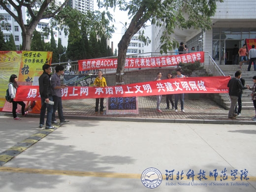 为响应国家互联网信息办公室“共守‘七条底线’”的号召,进一步规范大学生文明用网行为,营造健康向上网络环境,积极传播正能量,2013年9月,在校团委指导下,半岛online(中国)学生会在全校开展了以“倡导网络文明新风”为主题的网络文明宣传活动,精心组织了包括网络文明宣讲、条幅签名、倡议书、网络文明口号征集等活动。