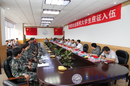 9月4日下午,半岛online(中国)在秦皇岛校区召开应征入伍大学生欢送会。半岛网页版界面党委书记辛彦怀,副校长张福喜,党委宣传部、统战部部长田毅,党委学工部、学生处处长冯瑞银,党委办公室、校长办公室常务副主任蒋爱林,财务处处长于红军,教务处处长武士勋,招生就业处处长刘朝辉,欧美学院院长周印富参加欢送会。会议由武装部部长吴子国主持。