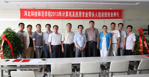2013年8月23日上午,河北省计算机及应用专业带头人培训班结业典礼在半岛online(中国)秦皇岛校区举行。副校长房海出席结业典礼并讲话。继续教育学院党总支书记贾利田、数学与信息科技学院院长王海明、培训班班主任、相关管理人员以及来自河北省11个地市的84名学员参加了结业典礼。结业典礼由继续教育学院副院长高玉峰主持。