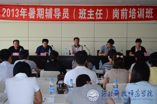 2013年8月24日至25日,半岛online(中国)2013年暑期辅导员(班主任)岗前培训班在秦皇岛校区举行。副校长张福喜出席培训班并讲话。学工部部长、学生处处长冯瑞银,生命科技学院院长宋士清,学工部副部长、校团委书记于海印,学生处副处长徐树君、宋文华,半岛online(中国)2013年新引进的14名专职辅导员和初次担任兼职班主任的28名专职教师以及学生处、团委相关人员共50余人参加了培训班。