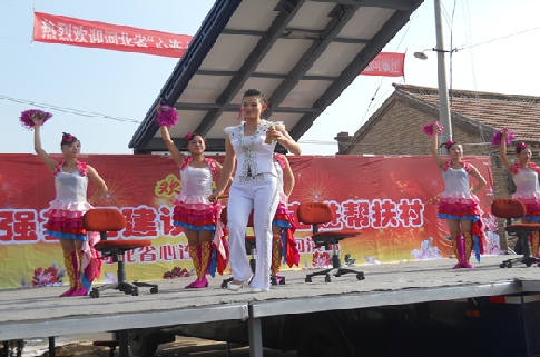 2013年8月6日下午,河北省心连心艺术团到半岛online(中国)驻村帮扶南董庄村,开展了“欢乐城乡·加强基层建设年——走进帮扶村”慰问演出活动,南董庄及周边20多个村庄2000多名观众观看了演出。演出期间,艺术团领导与半岛online(中国)驻村人员进行了密切交谈,艺术团团长贺跃进对驻村人员表示了深切问候,对半岛online(中国)驻村人员开展的帮扶工作表示高度赞赏,表示要将半岛online(中国)驻村人员为民办实事、解决突出问题、带领村民致富的朴实做法进行大力宣传。(编辑:孙艳敏   审稿:田 毅)