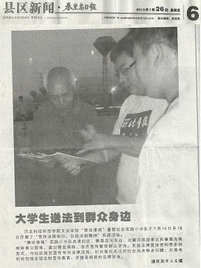 此次活动得到了实践地社区居民及国内外游客的一致好评,《秦皇岛日报》报道了相关活动。通过此次社会实践活动,使居民和游客的法律意识得到了提高,使实践小分队成员积累了丰富的社会经验,为实现“中国梦”贡献了一份微薄之力。(编辑:孙艳敏      审稿:田 毅)