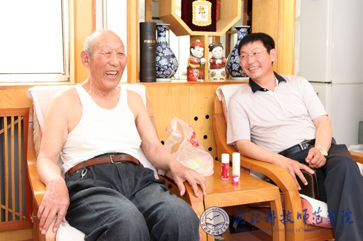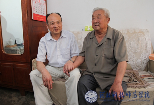 副校长张福喜与老党员王镇山亲切交谈