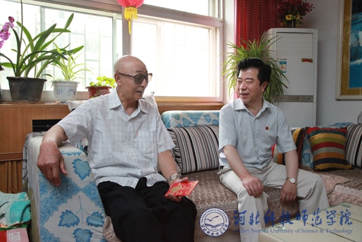 副校长郭国维与老党员钱连举亲切交谈