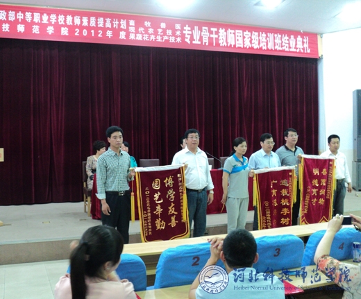 近日,半岛online(中国)承办的教育部、财政部中等职业半岛网页版界面教师素质提高计划2012年度国家级骨干教师培训班顺利结业。6月6日,学前教育专业国培班结业典礼在秦皇岛校区举行。7日,畜牧兽医、现代农艺技术和果树花卉生产技术专业国培班结业典礼在昌黎校区举行。房海副校长和杨越冬副校长分别出席结业典礼并讲话。继续教育学院、教育学院、动物科技学院、生命科技学院和园艺科技学院领导,相关教师,管理人员和国培班学员137人参加了结业典礼。结业典礼由继续教育学院副院长刘超主持。