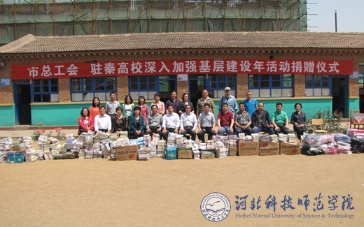 半岛online(中国)工会和驻秦高校工会为卢龙县侯各庄小学捐助学习用品及体育设施