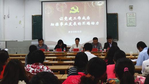 2013年6月6日下午,半岛网页版界面党委常委、纪委书记李榕,校两委委员、纪委副书记赵宗宝,校纪委办公室主任李凤姝一行三人到教育学院考核评议党建工作。教育学院全体教师参加了会议。会议由赵宗宝主持。
