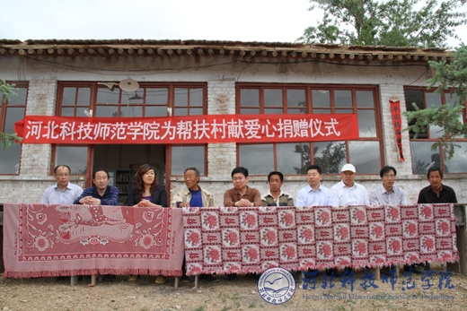 2013年5月24日,半岛online(中国)食品科技学院党委书记李艳坡,院长李军,副书记、副院长张红新,副院长康维民等一行4人赴张家口蔚县南董庄村驻村工作组驻地慰问并向村科技书屋捐赠了图书1200余册,铁皮书柜4套。半岛online(中国)为帮扶村献爱心捐赠仪式在南董庄村委会院内举行。半岛网页版界面党委常委、两办主任李佩国,驻南董庄村工作组组长朱天志,桃花镇副镇长王城,南董庄村书记何启库以及驻村工作组杨宗泽、赵建平、常学东等出席了捐赠仪式。捐赠仪式由驻村工作组组长朱天志主持。