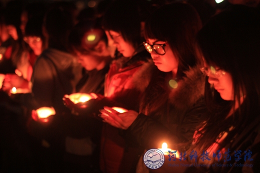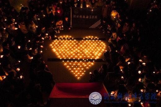 2013年4月20日8时2分,四川省雅安市芦山县发生了7.0级地震,造成了严重的伤亡。22日晚,校团委、学生会同时在秦皇岛、开发区、昌黎三个校区开展了祈福雅安活动。用自己特有的方式表达了对逝者的哀思和对灾区的牵挂。